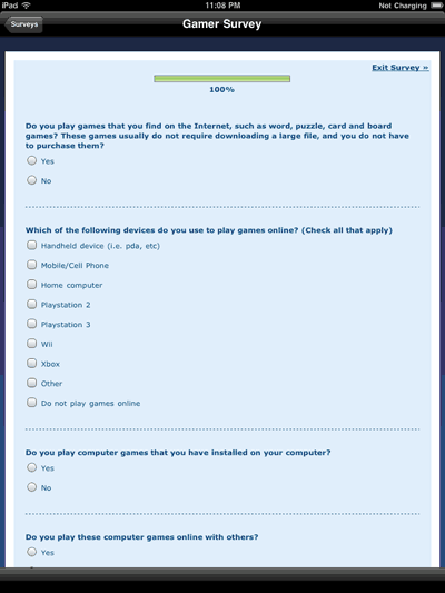 Rather than replicating a multiple choice questionnaire (view example), my UX approach was to make it intuitive and easy to complete. The five star, scrollable interface allows the user to fill the survey as fast as they want or skip questions they cannot answer.